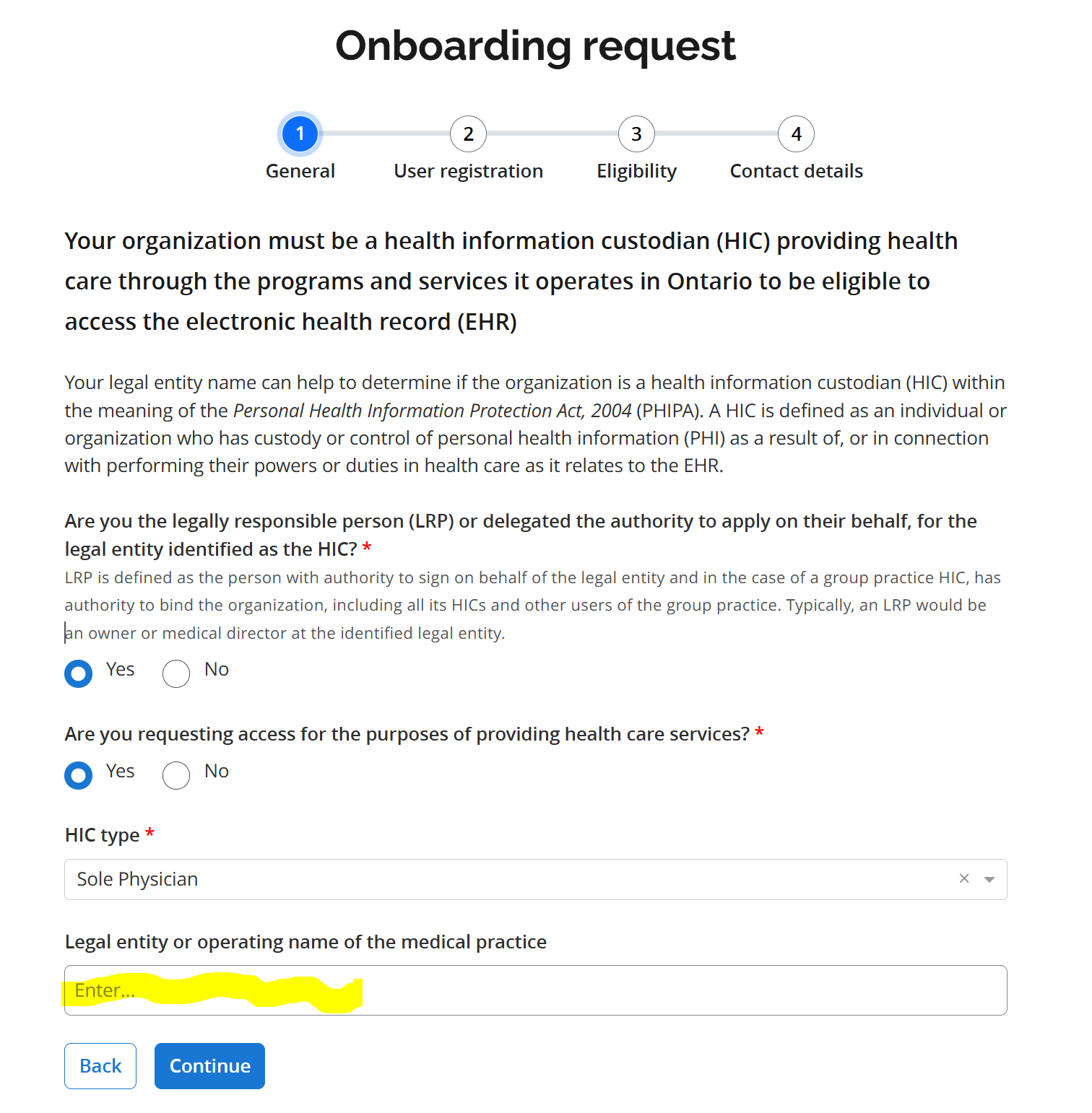 - Enter your OneID credential; if you do not have one, eHealth Ontario will contact you to set one up before granting access to Connecting Ontario
