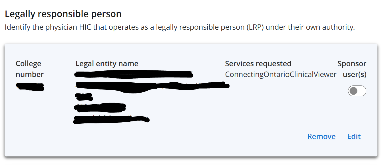 - You can leave the "Sponsor user(s)" un-selected. Your name should be populated under the Legal entity name as you are the Legally responsible person for your own virtual practice