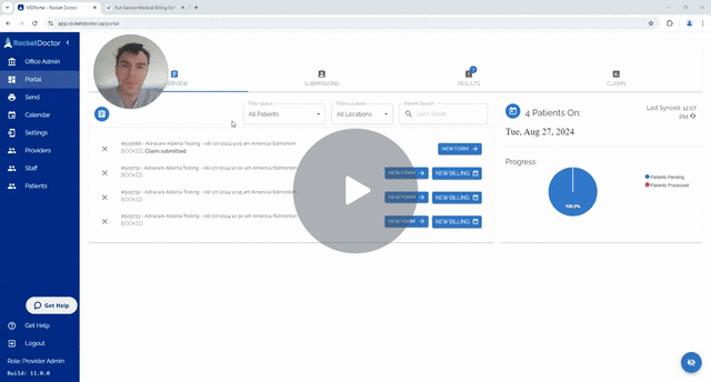 How-to submit claims using the ResolvMD Billing Integration (Walkthrough Video)Walkthrough video showing how to submit billing claims in Alberta using the ResolvMD billing integrationPlease review the walkthrough video below:Rocket Doctor Platform Billing Update - Watch Video