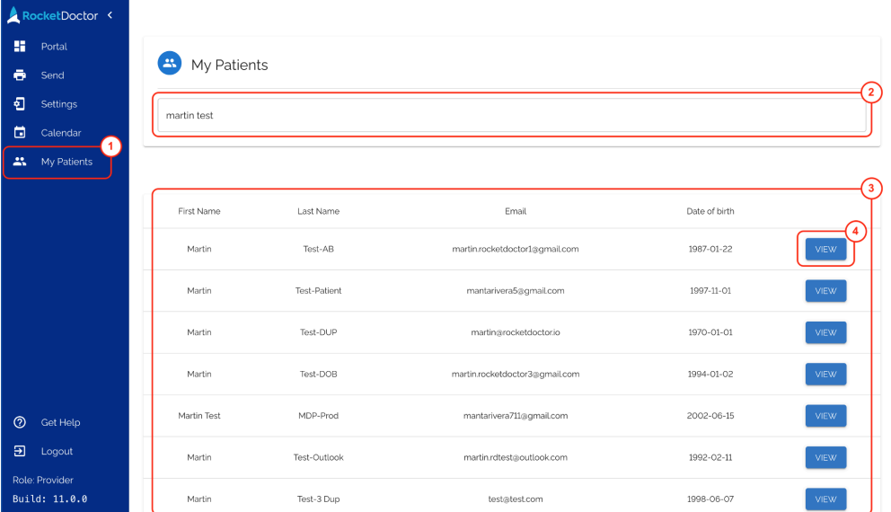 - Search results will be displayed in this section. By default, it shows a list of a few patients.