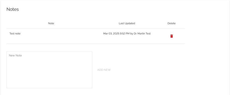 Notes - Any notes left by another provider (except appointment notes) or a staff member will be displayed here.