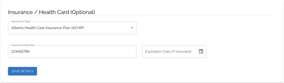 Insurance / Health Card - If applicable, this is where you can find and edit a patient’s health card details.